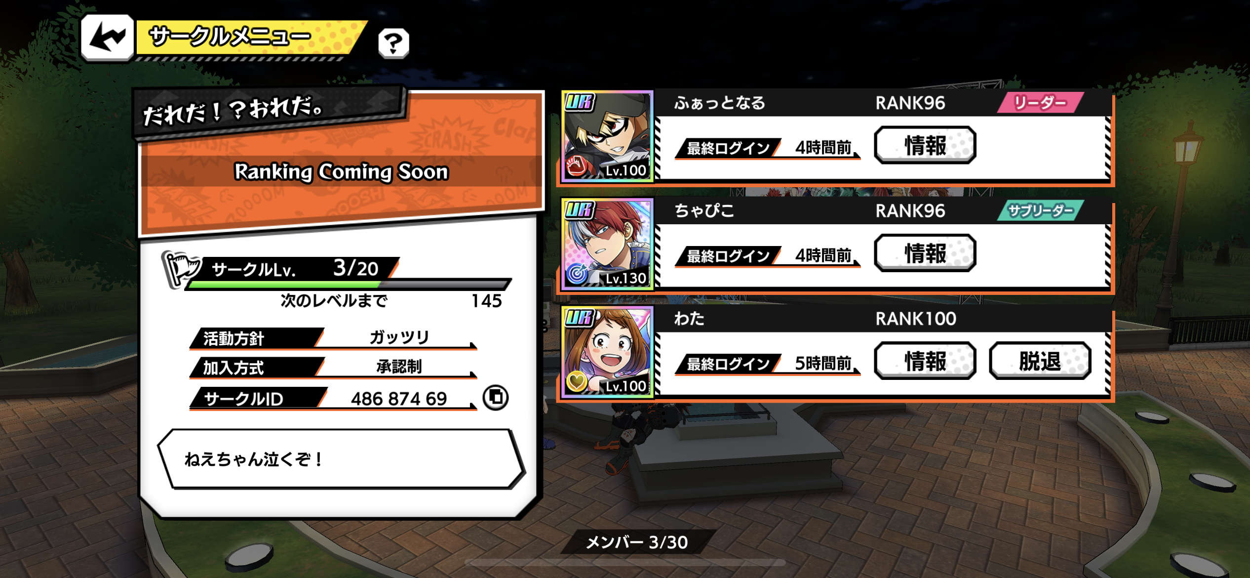 サークルメンバー募集してます!! サークルレベル3でとにかく自由に楽しむスタンスです。 初心者大歓迎です!!